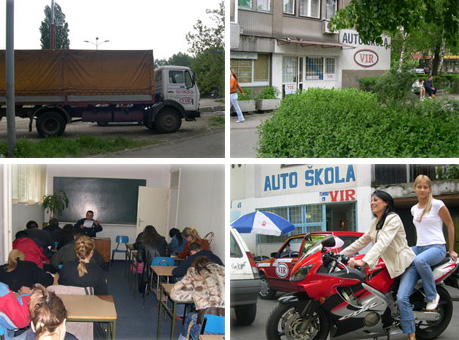 Delatnost Auto škole „VIR“ i Turbo „VIR“ je obuka i polaganje za vozače motornih vozila A, B, C, D i E kategorije, polaganje za vozače traktora, polaganje PSP testa i dopunska obuka za one koji poseduju vozačku dozvolu bilo koje kategorije. Auto škola „VIR“ se nalazi na Novom Beogradu, u bloku 45, u Ulici Jurija Gagarina 235, a Auto škola „Turbo VIR“ na Novom Beogradu u Ulici Narodnih heroja broj 3. pored T.C. „Fontana“. U našem centru za obuku vozača je zaposleno 14 instruktora vožnje, 4 referenta obuke i 2 organizatora posla. Vozni park Auto škole „VIR“ sačinjavaju: 14 Pežo putničkih vozila, jedno teretno, jedno priključno vozilo i autobus. „O nama mogu mnogo reći, ali je mnogo više ono malo što kažu kandidati koji su se obučavali u Auto školi „VIR“ – pitajte ih“. |