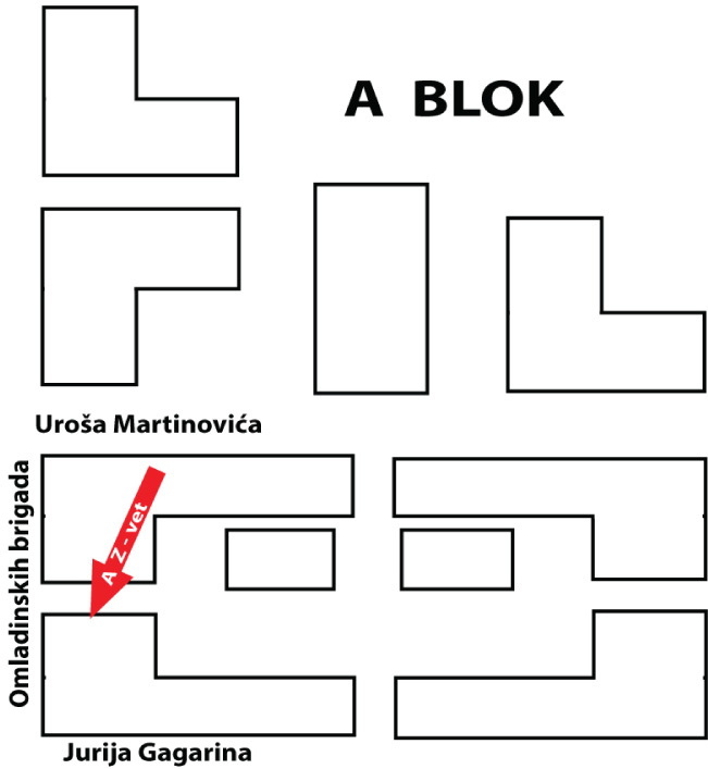 A blok; Jurija Gagarina 22 L, lokal 13 (ugao sa Omladinskih brigada)